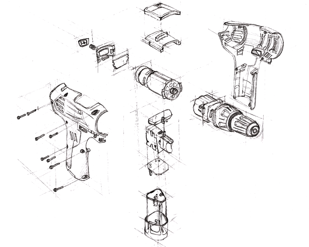 To understand the complexity of a cordless screwdriver, an old model was disassembled and rebuilt in Solidworks. In the process, important insights were gained for manufacturing and potential improvements were analyzed.