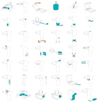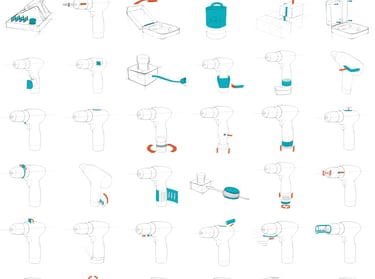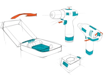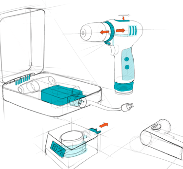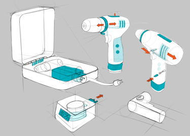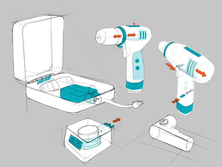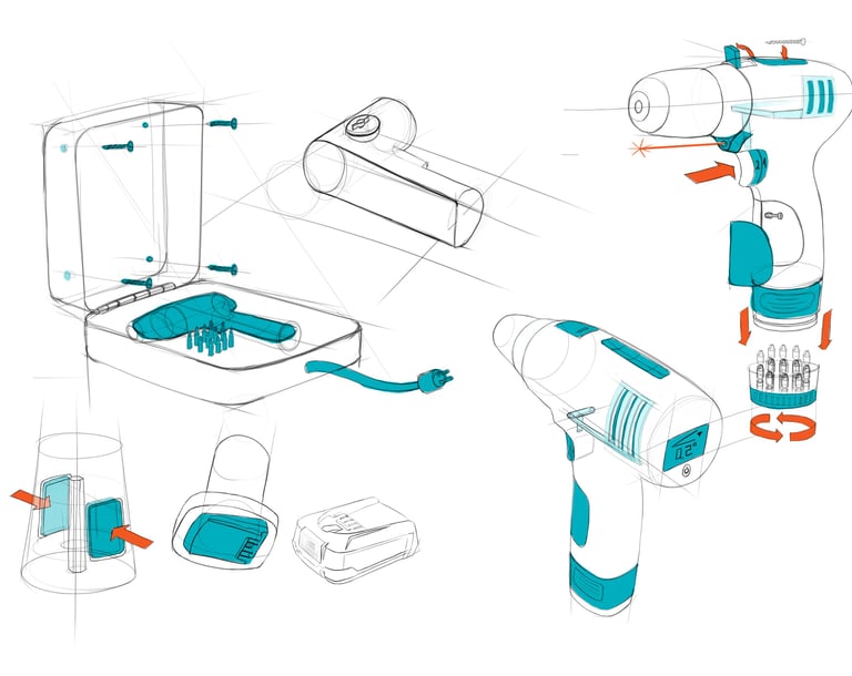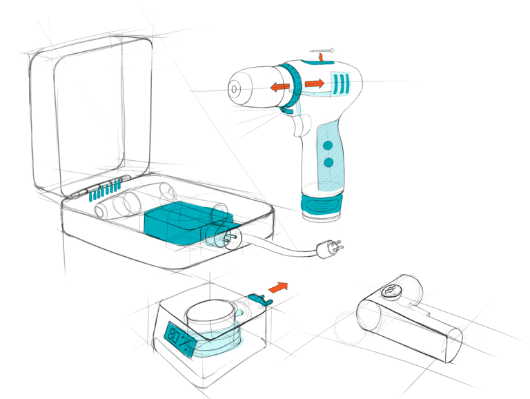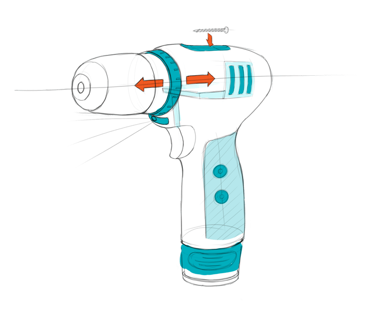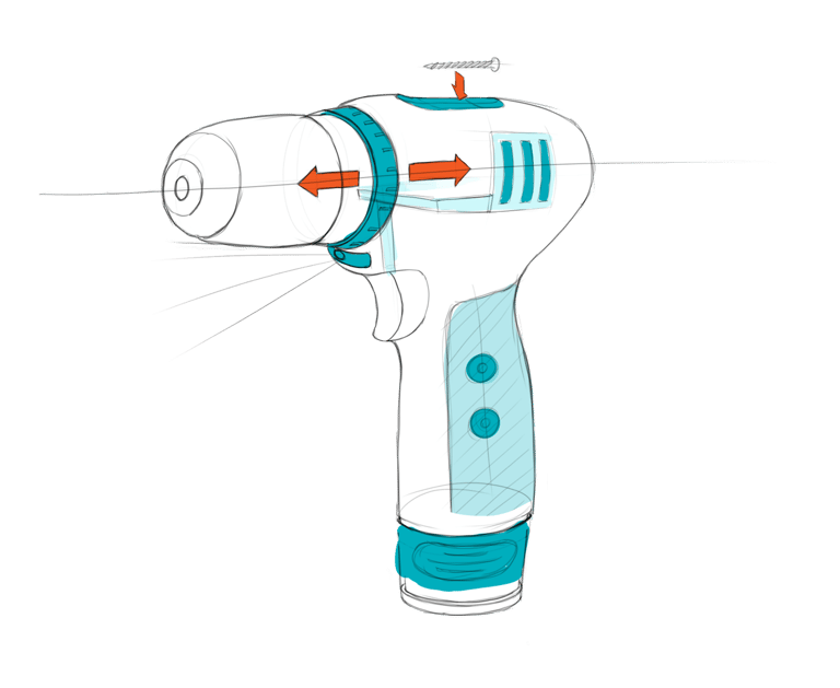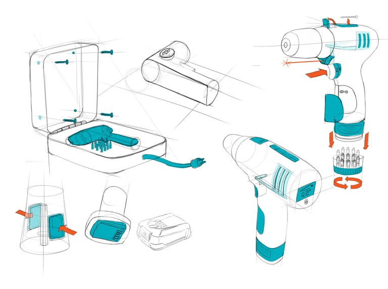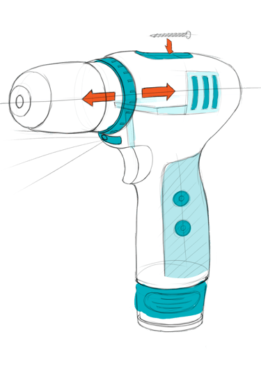 In order to gain a deeper understanding of the technical structure of a cordless screwdriver, a device was unscrewed. All parts were exactly reconstructed in CAD. The insights gained in this way, together with the findings from the market analysis, were recorded in the form of potential fields and finally in the form of concepts. After consolidation, the design was developed.