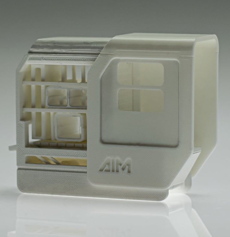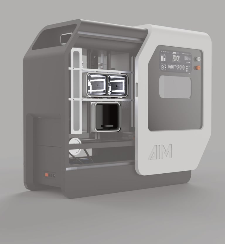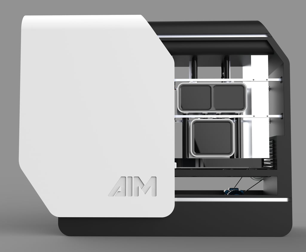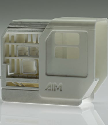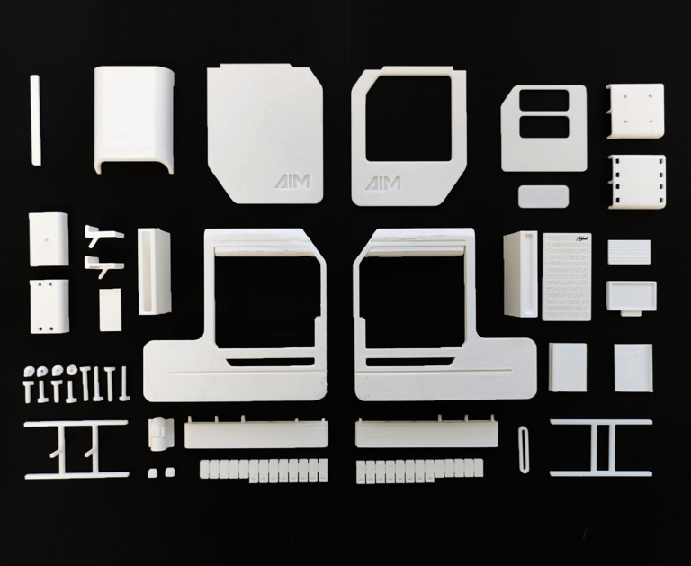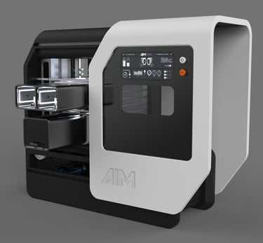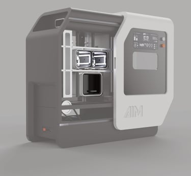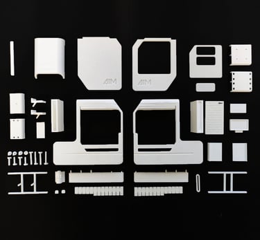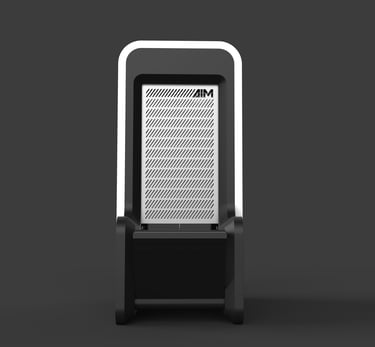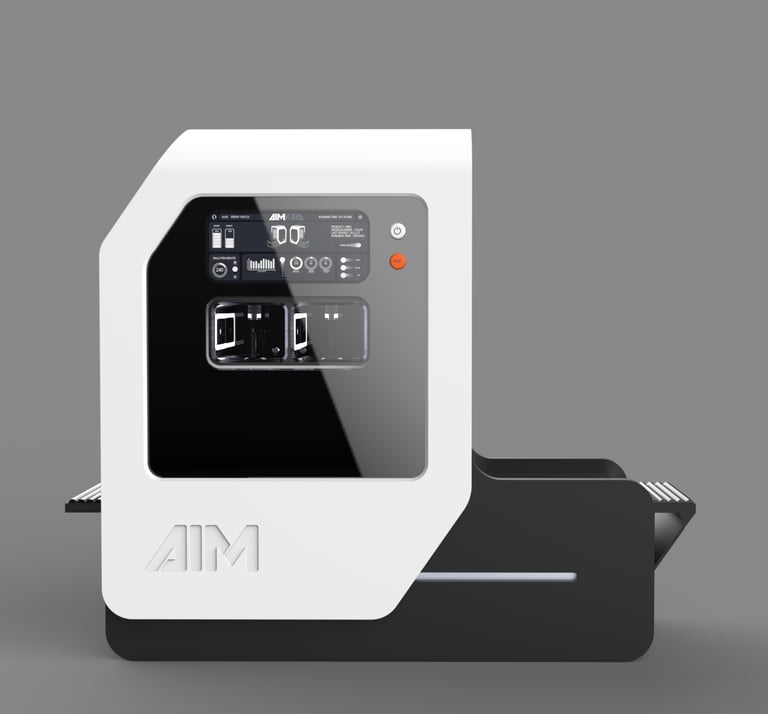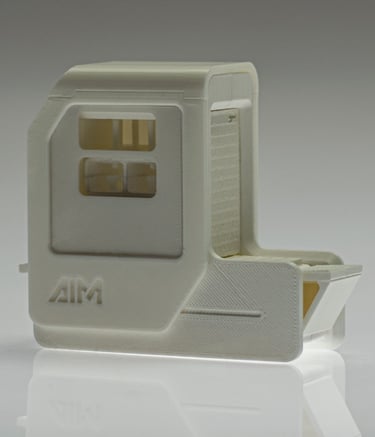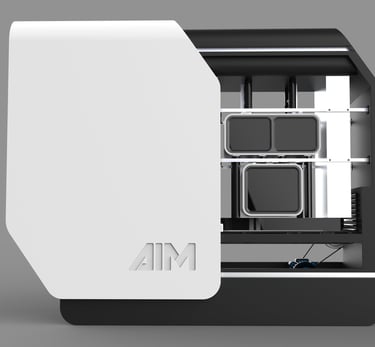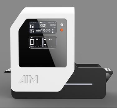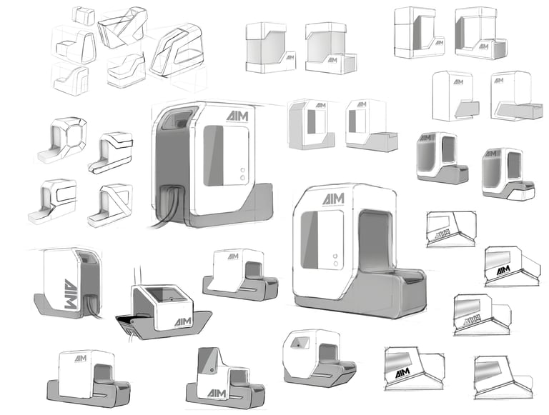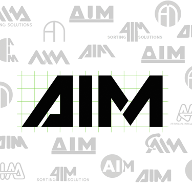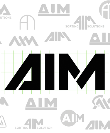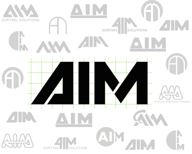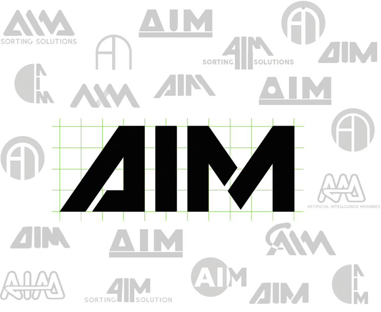 AIM stands for "Artificial Intelligence Machines." The logo design focued on representing the machine outer shape. Therefore, the same slant was used and an inherently compact appearance of the typography was developed.