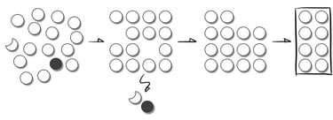 A functional workslike that separates the balls and sorts out the defective balls. At the end the intact balls are packed.